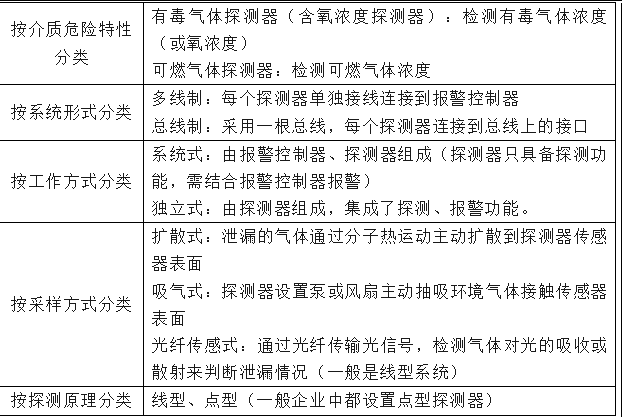 GB/T50493 | 设置的探测器种类是否和现场介质吻合 | 1.有毒气体介质设有毒探测器 2.可燃气体介质设可燃探测器 3.同时具备可燃和有毒特性的应设有毒气体探测器如一氧化碳 4.氧和惰性气体场所设氧浓度探测器 |