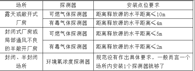 比空气轻的可燃气体或有毒气体释放源处于封闭或局部通风不良的半敞开厂房内,除应在释放源上方设置探测器外,还应在厂房内更高点气体易于积聚处设置可燃气体或有毒气体探测器。